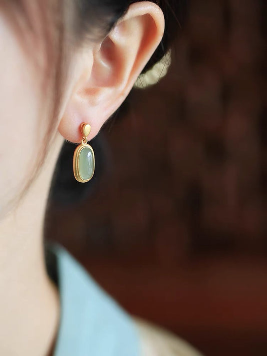 925 Sterling Silver White Jade Earrings