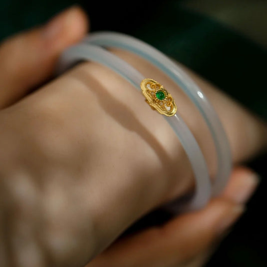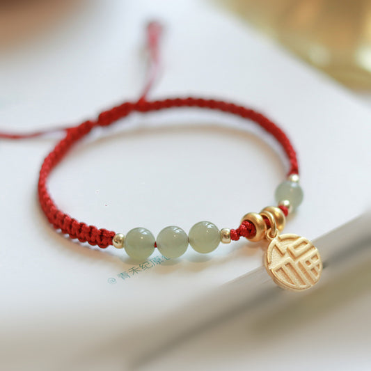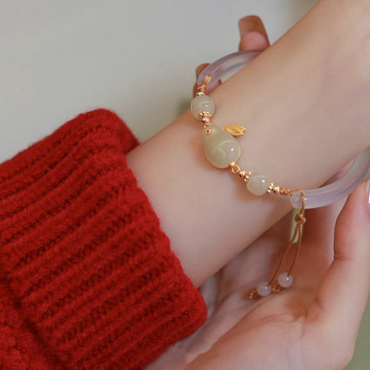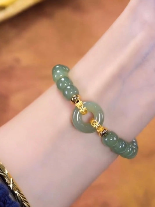 Natural Green Jade Luck & Peace Buckle Bracelet