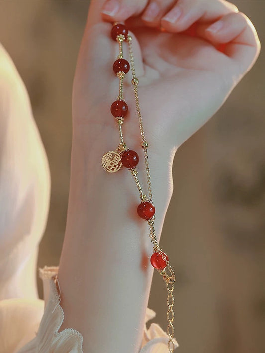 Natural Red Agate Feng Shui Bell Bracelet- Special
