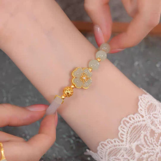 Natural Hetian Jade Peach Blossom Hydrangea Bracelet