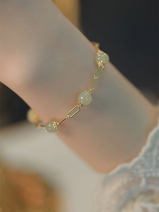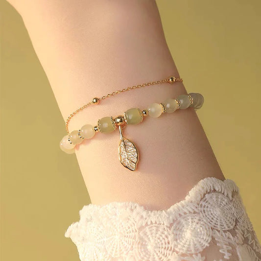 Natural Hetian Jade Feng Shui Wealth Leaf Bracelet