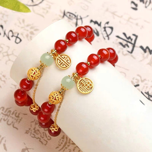 Natural Green Jade Feng Shui Apricot Leaves Bracelet