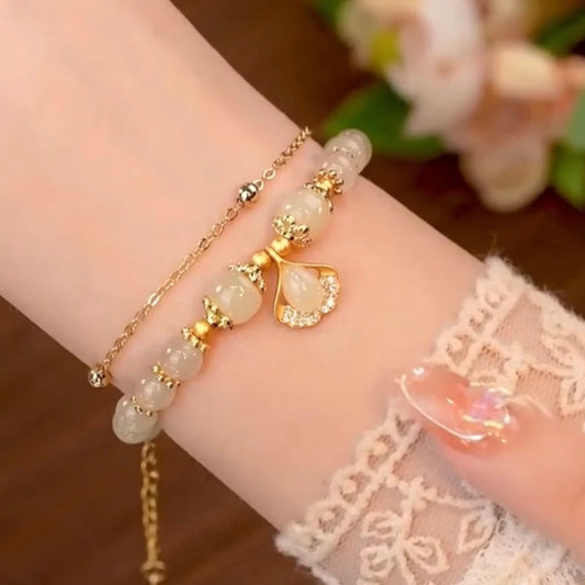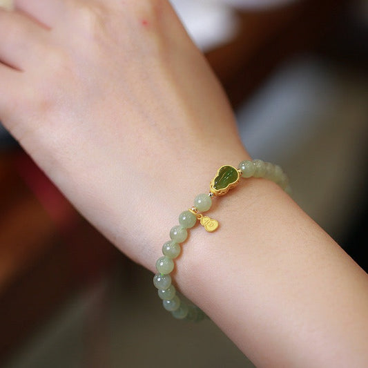 Natural Hetian Green Jade Feng Shui Calabash Bracelet