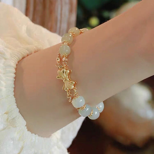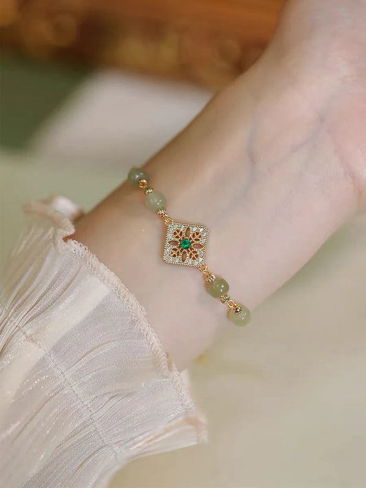 Natural Green Jade Feng Shui Magnolia Bracelet