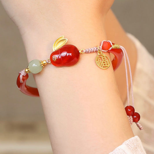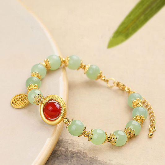 Natural Red Agate & Hetian Jade Feng Shui Rabbit Bangle