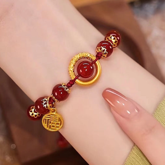 Natural Red Cinnabar Gold Bead Protection Bracelet