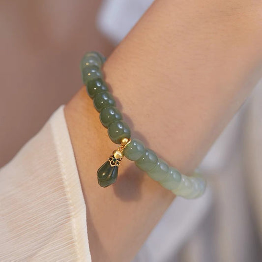 Natural Hetian Green Jade Feng Shui Calabash Wealth Bracelet
