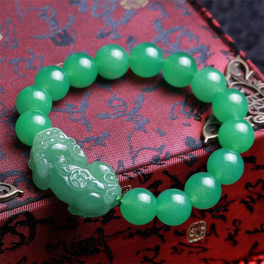 Natural Green Jade Wealth Pixiu Bracelet