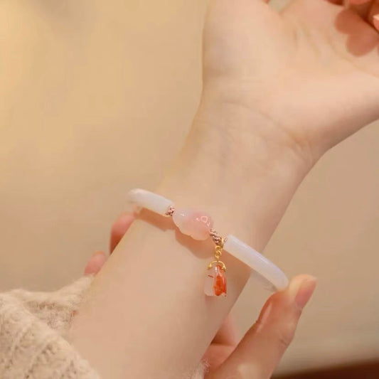 Natural Hetian White Jade & Yanyuan Agate Feng Shui Rabbit Bangle