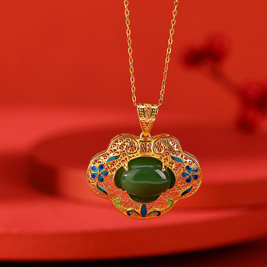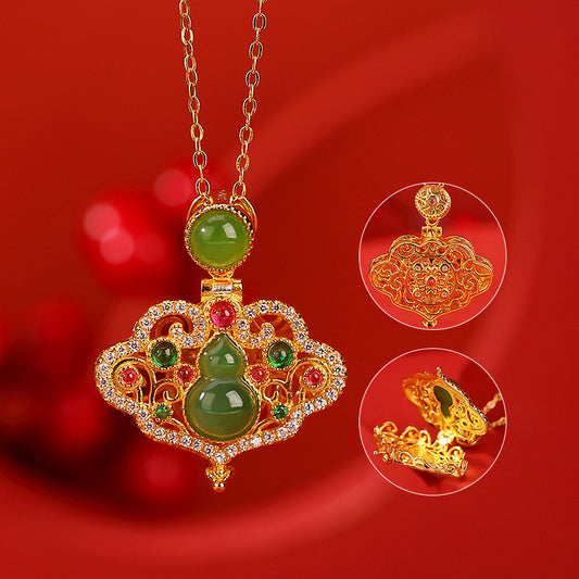Natural Hetian Jade Calabash Cloud Ancient Royal Pendant Necklace