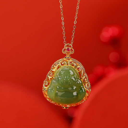 Natural Green Hetian Jade Feng Shui Buddha Sachet Pendant