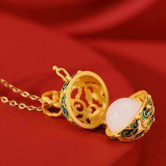 Natural Hetian White Jade Sachet Ball Pendant Necklace