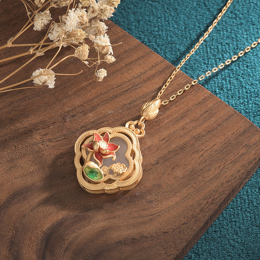 Feng Shui Lotus Pond White Jade Auspicious Necklace