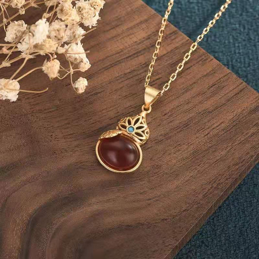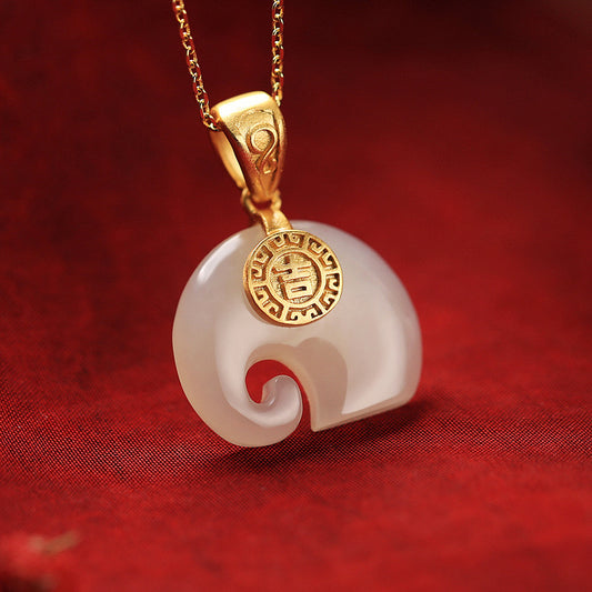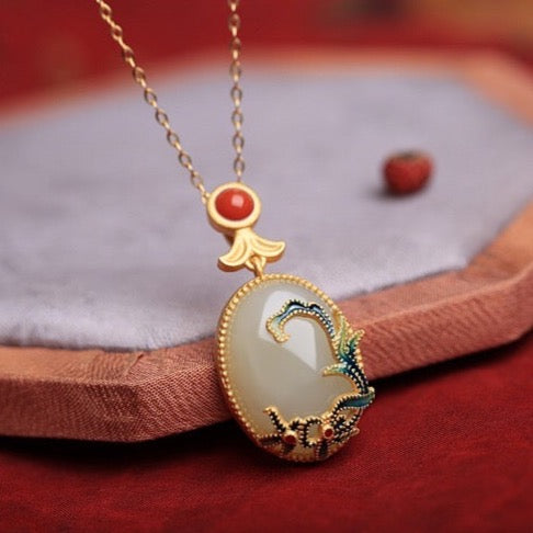Feng Shui White Jade Auspicious Enamel Pendant Necklace