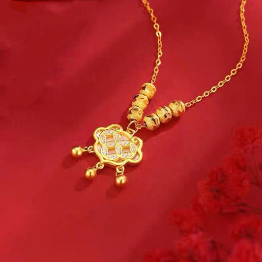 Feng Shui Fortune & Longevity Lock Gold Plated 999 Silver Necklace