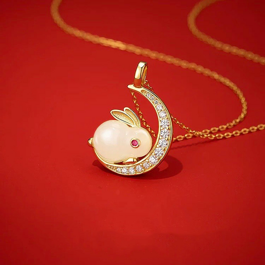 Natural Hetian Jade Rabbit & Moon Auspicious Pendant