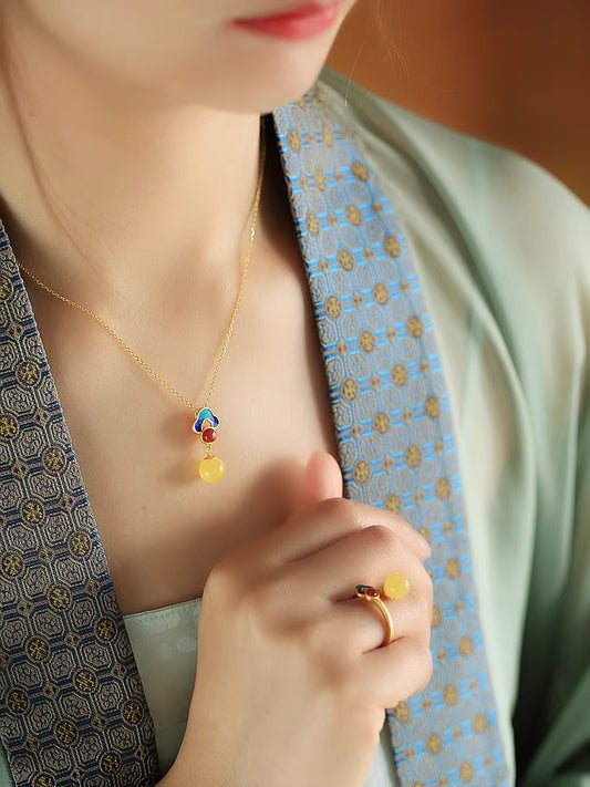 Feng Shui Enamel Amber Stud Pendant Necklace