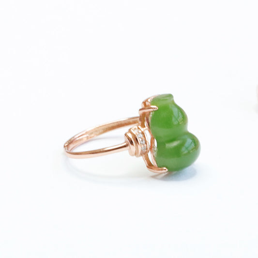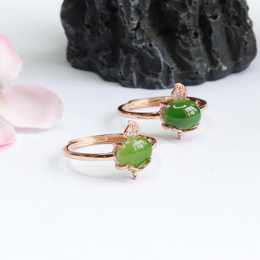 Natural Green Jade Feng Shui Crown Prosperity Ring