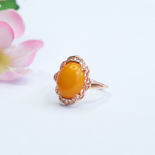Natural Amber Enamel Pigeon Egg Wealth Ring