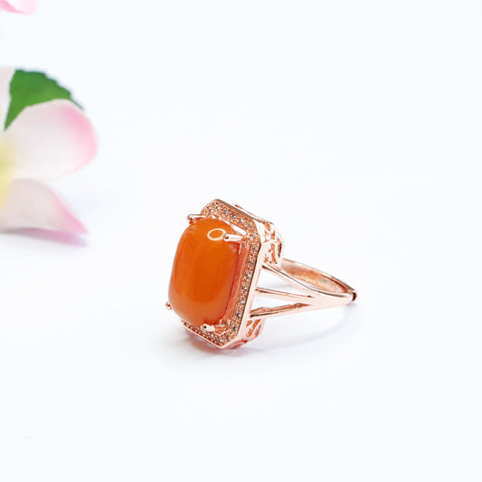 Natural Amber Enamel Pigeon Egg Squared Auspicious Ring
