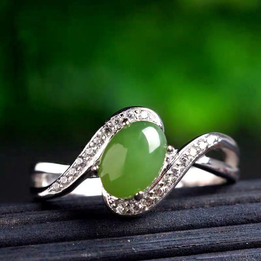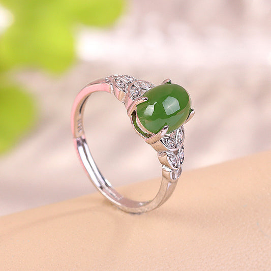 Natural Green Jade Feng Shui Pigeon Egg Ring