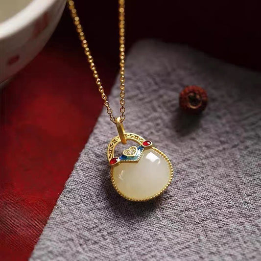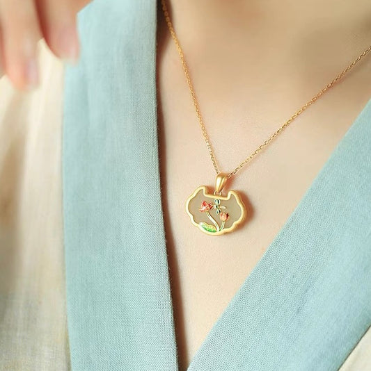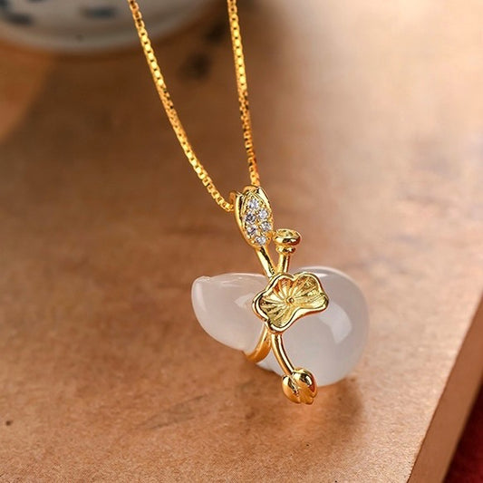 Hetian White Jade Hulou Lotus Leaf Pendant Necklace