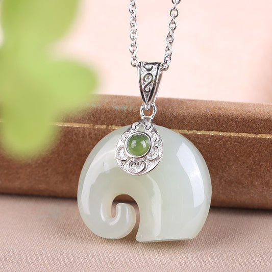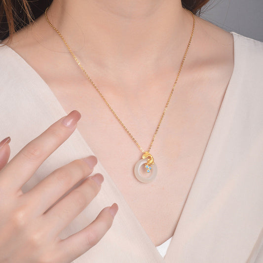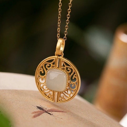 Natural Hetian Jade Hollow Carving Auspicious Necklace