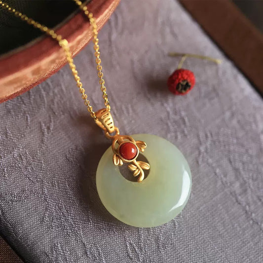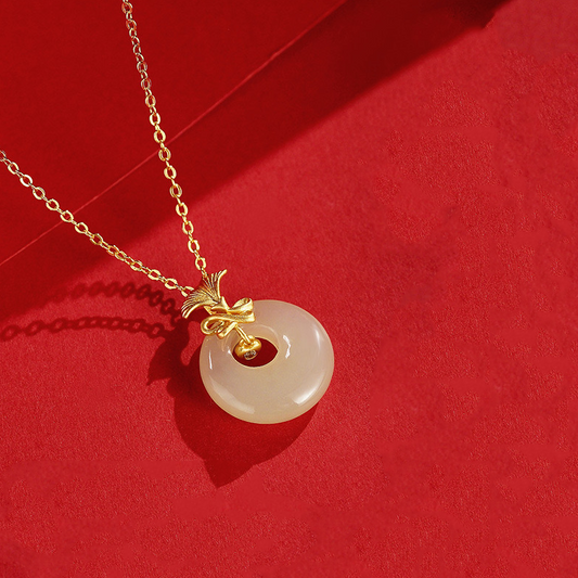 Natural Hetian Jade Longevity Lock Ginkgo biloba Necklace