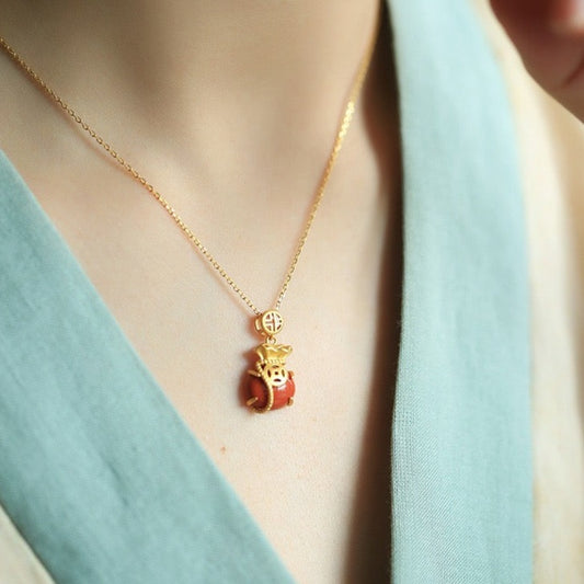 Feng Shui Red Agate Money Bag Wealth Necklace