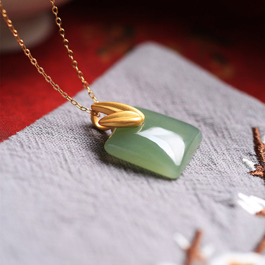 Feng Shui Bamboo Leaves Green Jade Peace Pendant