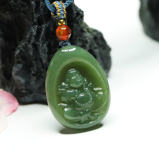 Natural Green Hetian Jade Feng Shui Buddha Pendant