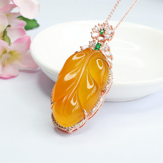Natural Yellow Jade Feng Shui Healing Leaf Wealth Pendant Necklace