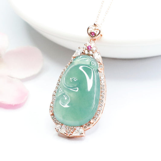 Natural Ice Emerald Feng Shui Laugh Buddha Pendant