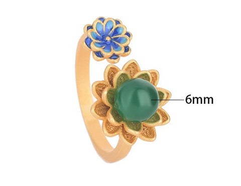 Blue Enamel Green Jade Ring